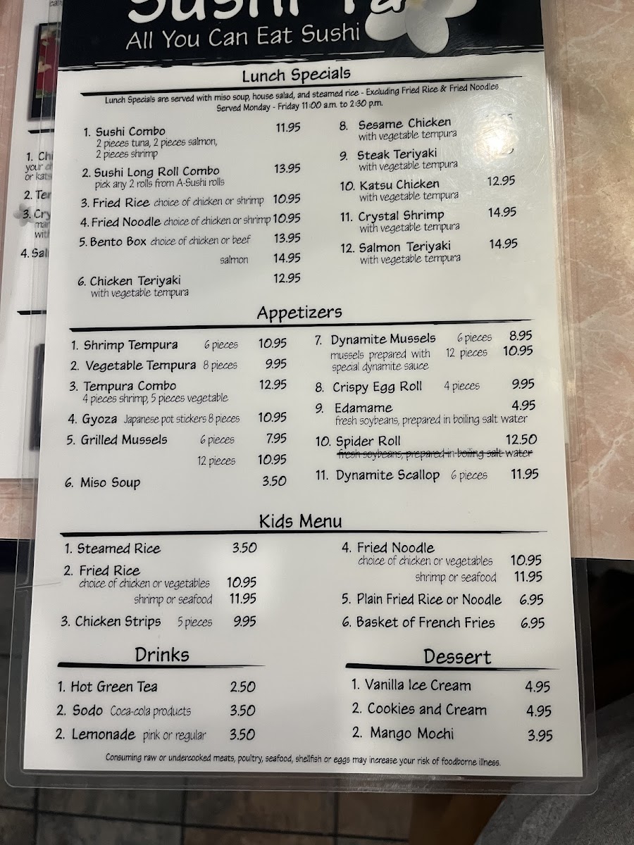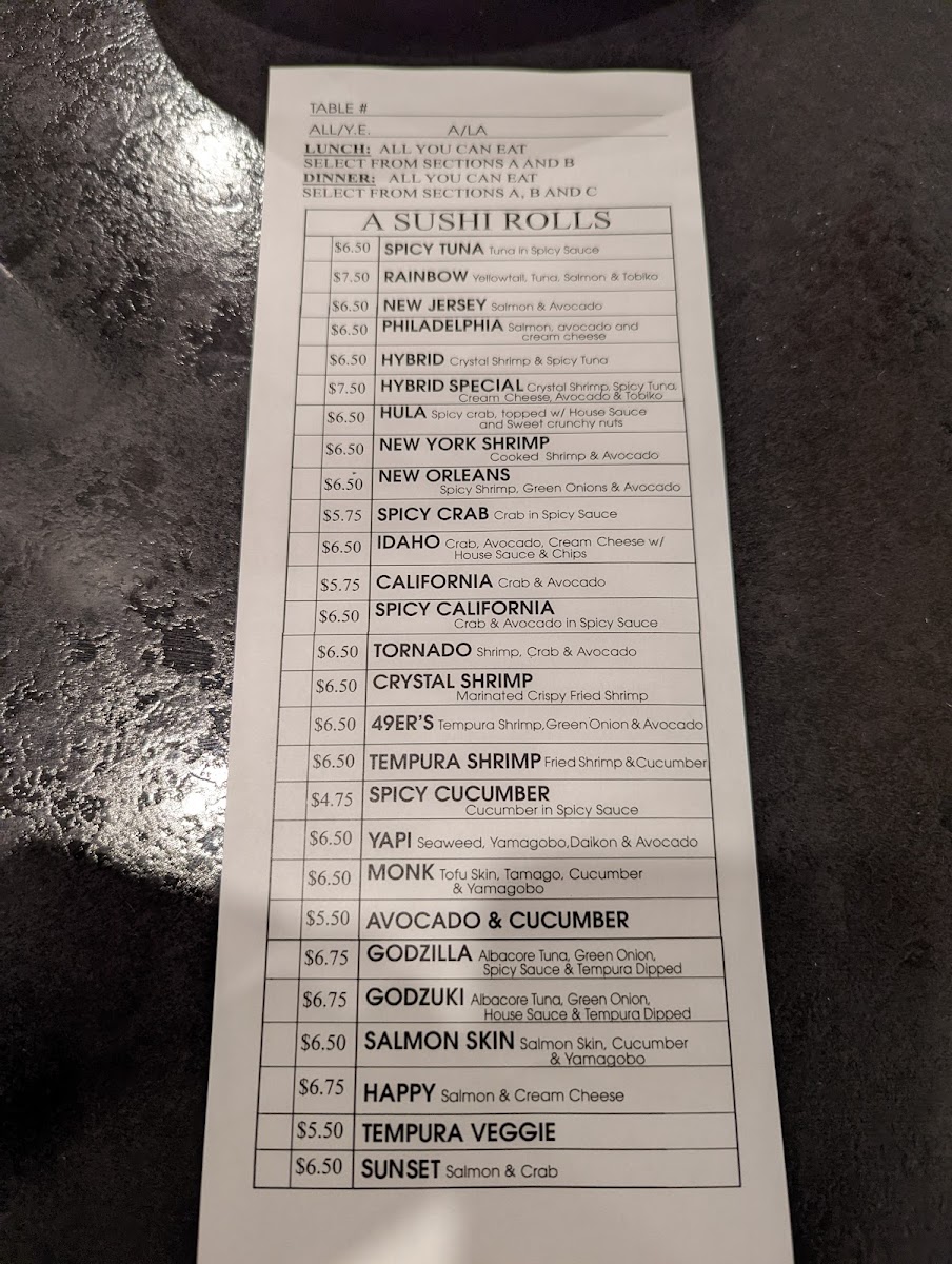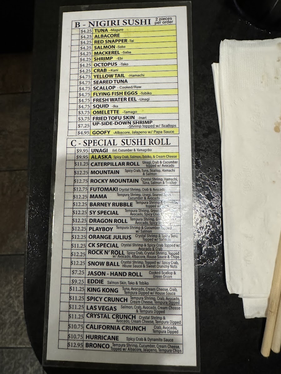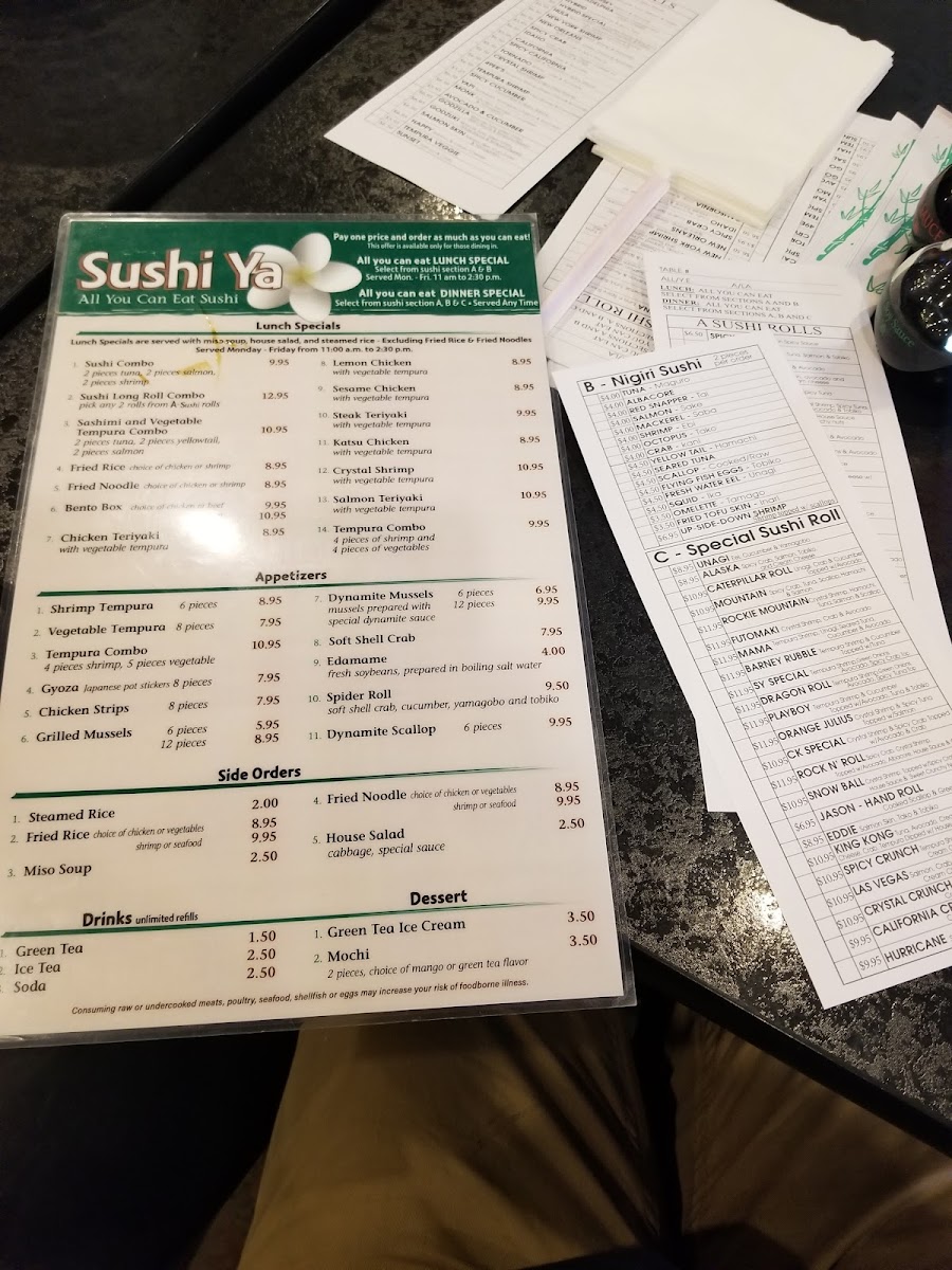 Sushi Ya Menu